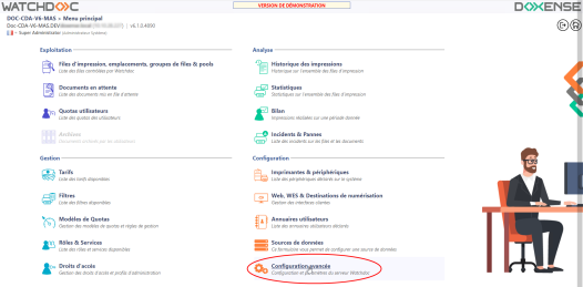 connectez-vous en tant qu'administrateur dans l'interface d'administration Watchdoc ;