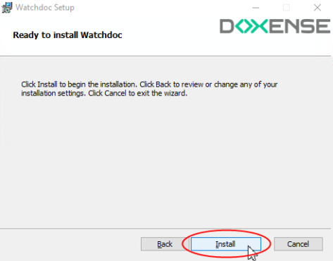 Dans la fenêtre Ready to install Watchdoc, cliquez sur Install.