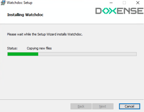 è La fenêtre Installing Watchdoc affiche la progression de l'installation, puis un message informant de la réussite de l'installation.
