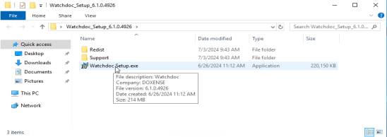 Dans le dossier d'archive décompressé Watchdoc Setup :