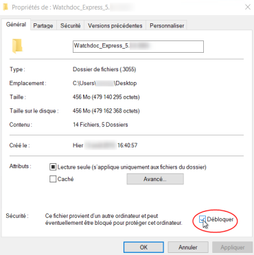 cliquez sur OK pour débloquer l'archive ou fermez la fenêtre si l'archive n'est pas bloquée :