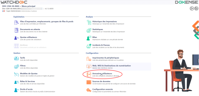 dans la section Configuration, cliquez sur Annuaires utilisateurs :