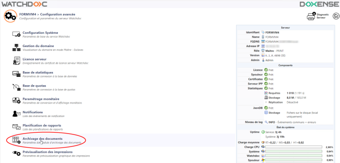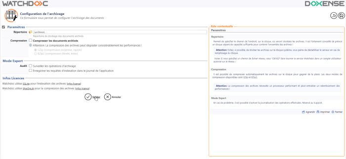 La fonction d'archivage occupant de la place sur l'espace disque, elle est désactivée par défaut sur Watchdoc. Avant de l'activer, il convient de vérifier que l'espace disque est suffisant pour conserver les archives.