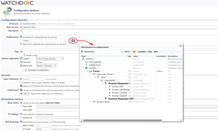 Watchdoc - Emplacements - Associer un serveur à un emplacement