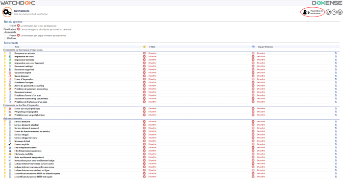 L'outil Watchdoc est en mesure d'envoyer des messages d'alerte à ses utilisateurs ou à ses administrateurs.