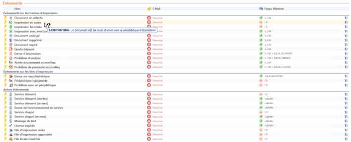 Ces messages, déclenchés par des événements prédéfinis, sont, soit envoyés par e-mail, soit affichés dans des fenêtres MS® Windows (Popup ou Notifieur), via le service MSG.exe.