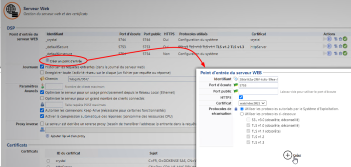 Watchdoc - Serveur web - Configurer les points d'entrée du serveur web et certificats associés