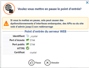HTTPS : cochez la case si le point d'entrée est sécurisé à l'aide de ce protocole (depuis la v. 6.1.1.5360, le point d'entrée _crystal 5744 est en HTTPS et ne doit pas être décoché dans une configuration par défaut).