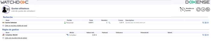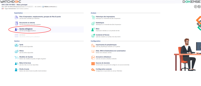 Watchdoc - Quotas - Présentation de l'interface d'administration