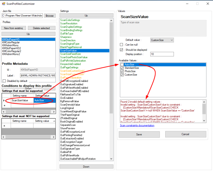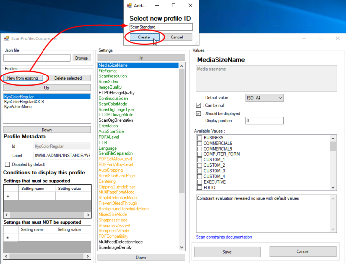 WEScan - ScanProfilesCustomizer - Créer ou modifier un profil de numérisation