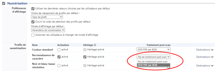 dans l'interface Configuration du profil WES, section Numérisation, activez le Profil de numérisation sur lequel doit être appliqué le traitement ;