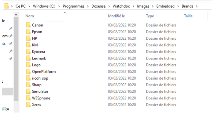dans ce dossier, ouvrez ensuite le dossier C:\Program Files\Doxense\Watchdoc\Images\Embedded\Brands :