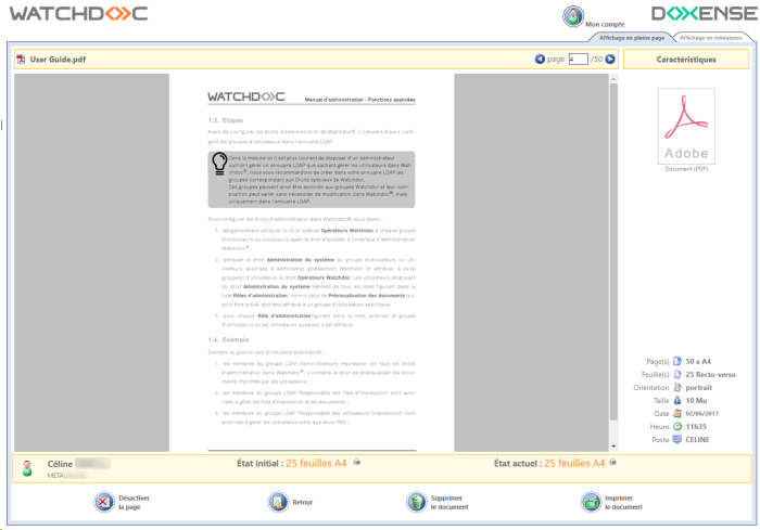 Anonyme : ce mode permet d'utiliser Watchdoc sans avoir à s'authentifier ;