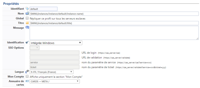 Annuaire de cartes : sélectionnez dans la liste l'annuaire dans lequel sont référencés les badges des utilisateurs se connectant au profil web.