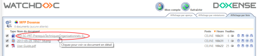 par liste : interface dans la quelle les documents à imprimer sont présentés sous forme de liste. Un lien permet d'accéder à l'affichage détaillé de chaque document :