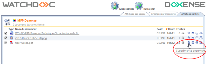 Par défaut, les demandes d'impression sont affichées dans une liste, classées par ordre antechronologique ou chronologique.