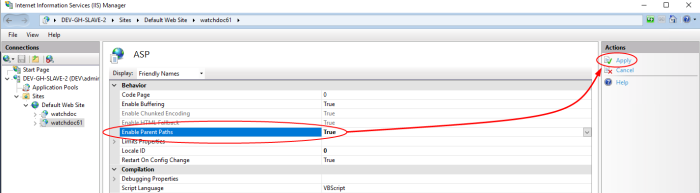Dans Internet Information Services (IIS) Manager, cliquez sur l'icone ASP ;