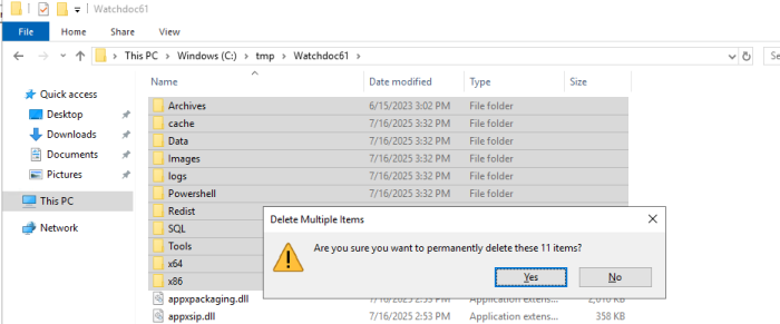 copiez ce dossier et collez-le dans un autre dossier temporaire ("C:\tmp\Watchdoc61", par exemple). Ce dossier doit rester intact durant la mise à jour de l'intégralité des serveurs. Vous pourrez le supprimer une fois la mise à jour validée ;