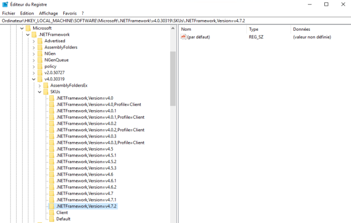 Pour connaître la version du .Net Framework installée sur votre serveur :
