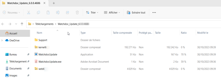 Copiez l'archive Watchdoc_Update_[Nouvelle_Version].zip dans le dossier C:\TEMPWD et décompressez-la dans ce dossier (clic droit > extraire tout).