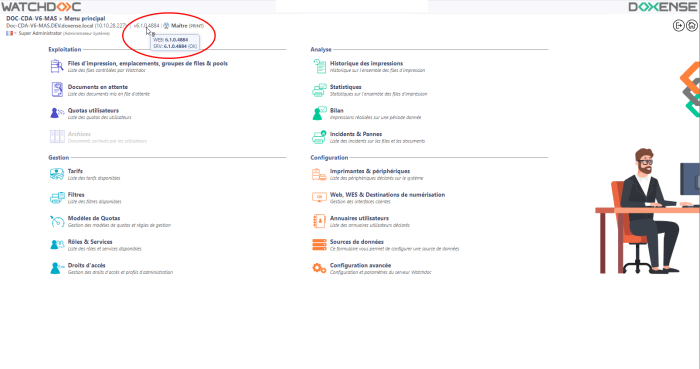 Pour connaître la version Watchdoc installée sur votre serveur :