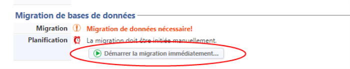 dans la section Migration des bases de données, cliquez sur Démarrer la migration immédiatement :