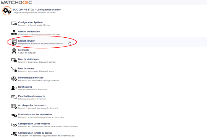 accédez à l'interface d'administration de Watchdoc en tant qu'administrateur ;