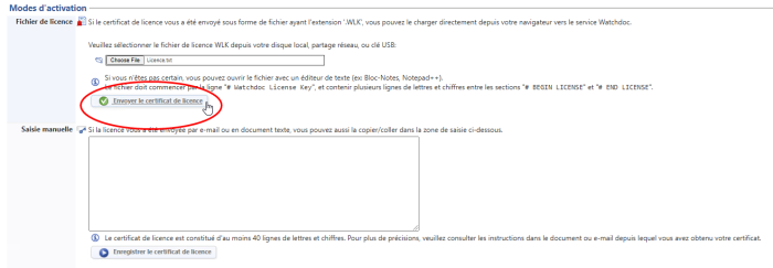 une fois le fichier sélectionné, cliquez sur le bouton Envoyer le certificat de licence..