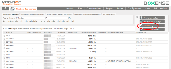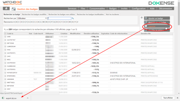 Pour importer une liste de badges dans la Console de supervision, il convient donc d'avoir, au préalable, extrait les badges dans un fichier CSV.