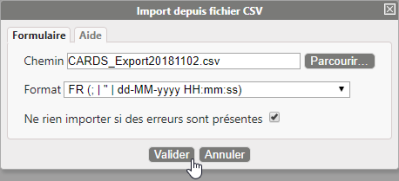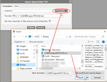 depuis la fenêtre Import depuis fichier CSV, cliquez sur le bouton