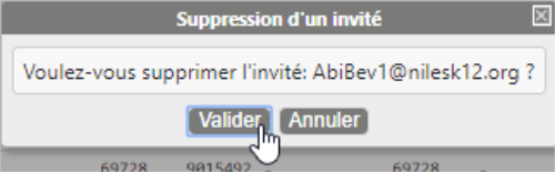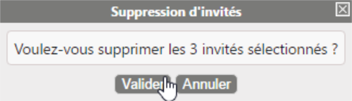Dans la boîte Suppression d'un invité, cliquez sur le bouton Valider pour confirmer la suppression :