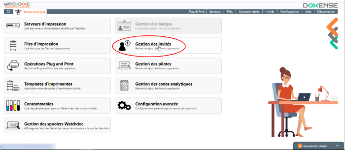 Depuis le Menu principal de WSC, cliquez sur le bouton Gérer les invités :