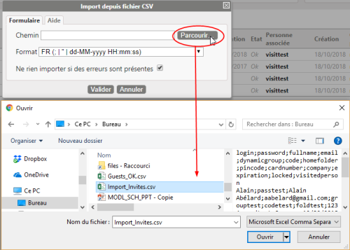 La Console de Supervision dispose d'un outil permettant d'importer en masse une liste d'invités extraite d'une base de données tierce ou établie dans un document tiers.