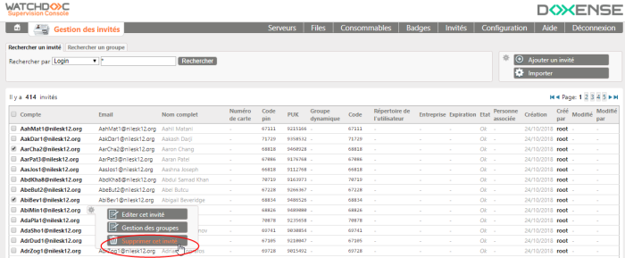dans la liste des invités, cliquez-droit sur la roue dentée située à droite de l'invité dont vous souhaitez supprimer le compte ;