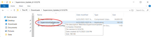 dans le dossier décompressé, cliquez sur l'exécutable SupervisionUpdater.exe ;