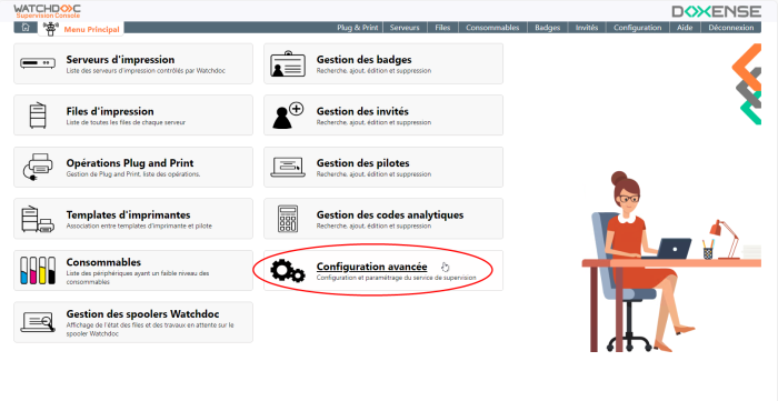 depuis le Menu principalde WSC, cliquez sur la section Configuration avancée :