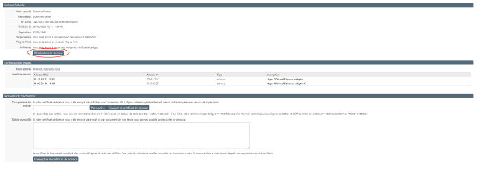 depuis l'interface Configuration avancée, cliquez sur la section Gestion de la licence :