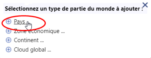 Créez un emplacement de type Pays, en laissant toutes les options par défaut.