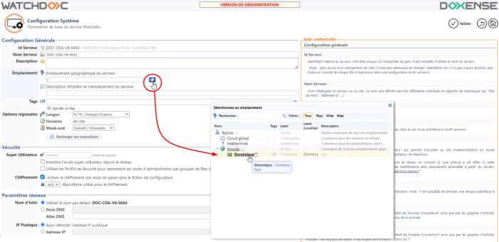 Une fois l'emplacement créé, associez-le à votre serveur Watchdoc :