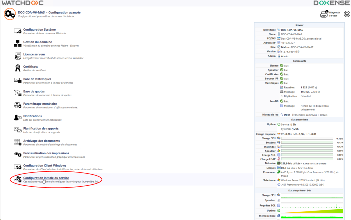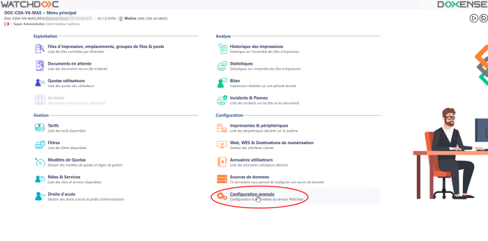 accédez à l'interface d'administration de Watchdoc en tant qu'administrateur ;