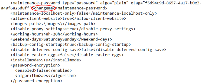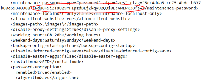 vérifiez dans le fichier Config.xml que les mots de passe auparavant lisibles ont été obfusqués.