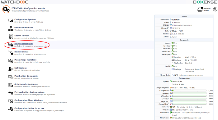 dans l'interface Configuration avancée, cliquez sur Base de statistiques ;