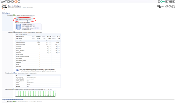 cliquez sur le bouton Vérifier la base de données pour que Watchdoc vérifie la connexion ;