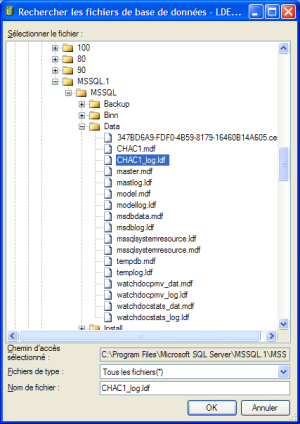 sélectionnez le fichier .MDF correspondant à la base créée ;