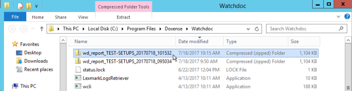 Watchdoc Diag Tool crée un dossier d'archive compressé (.zip) contenant les fichiers traces (log) et de configuration.