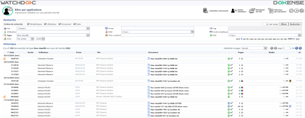 Vous souhaitez savoir quel est le volume des documents imprimés dont le type d'application n'est pas connu. Dans les bilans, ces documents sont alors qualifiés de "non classifiés".