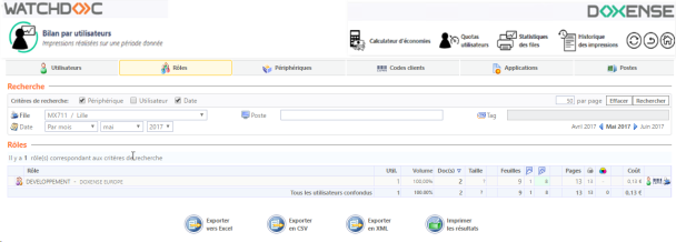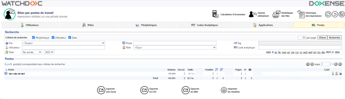 Vous souhaitez savoir depuis quels postes de travail les utilisateurs d'un rôle (service de votre établissement) précis ont lancé leurs travaux d'impression au cours de l'année écoulée.