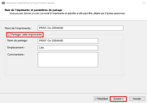 cochez la case Partager cette imprimante, puiscliquez sur Suivant ;