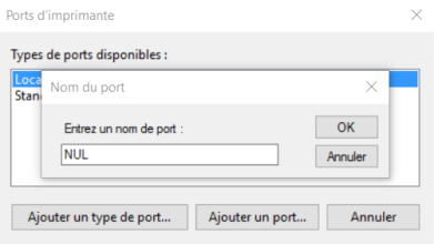 dans la fenêtre Nom du port, saisissez la valeur NUL ;