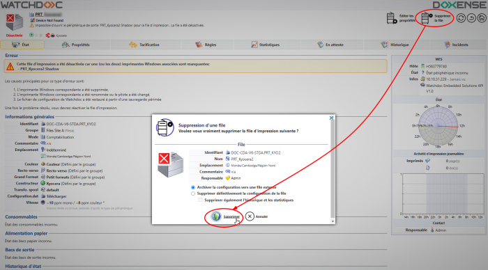 Pour supprimer une file d'impression contrôlée par Watchdoc.
